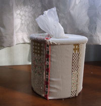 ↓は苦し紛れの作品。なぜか最近我が家ではトイ○ットペーパー(隠す意味なし)をティッシュに使ってます。市販のケースにただ両面テープで去年余った布をベタベタ貼っただけというwだってあまりにも安っぽくてダサかったんだもーん!