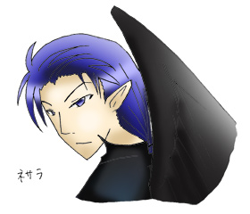 今日の落書きはネサラ(暁)。鴉王~。黒い翼描きにくい!